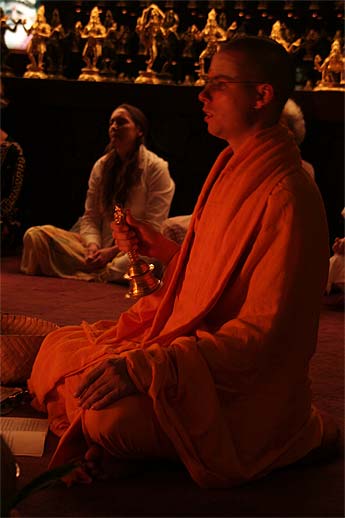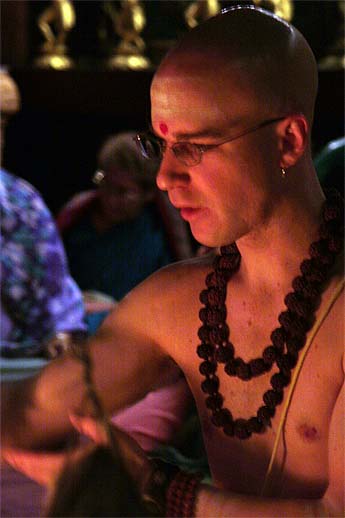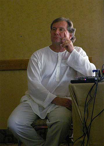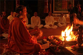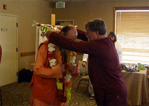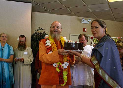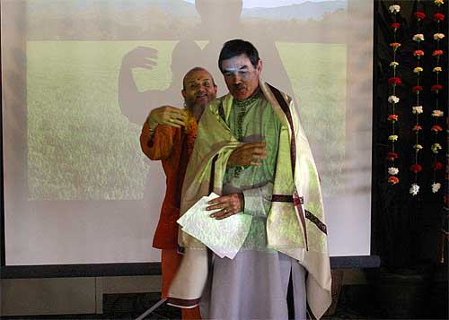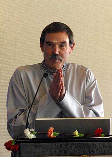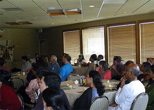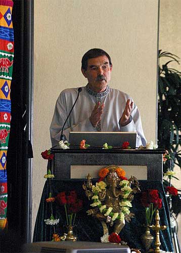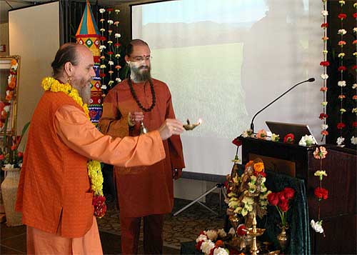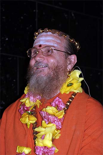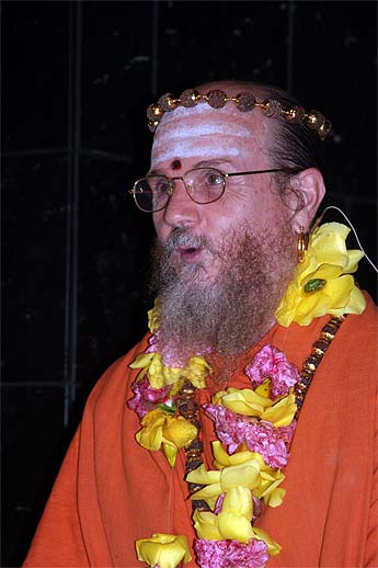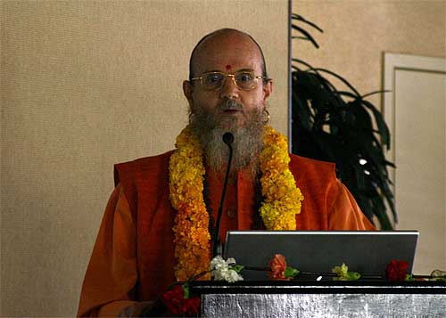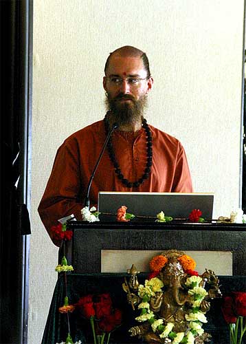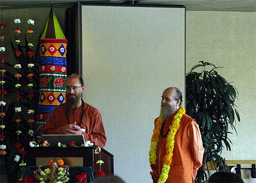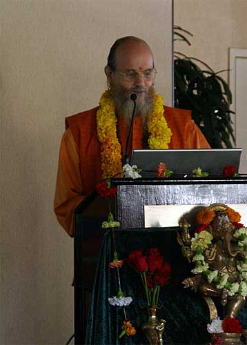 Bodhinatha's morning talk was about the world. He explained how one must regard the world as "real" because the fulfillment of dharma in the world is one requirement for moksha. Sometimes, he said, people start to regard the world as "unreal" and then think they don't have to deal with it, when, in fact, they do.