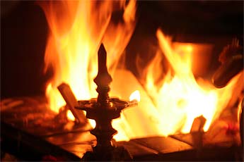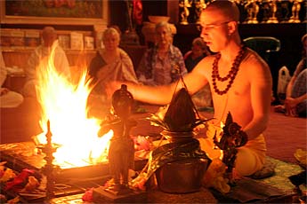 We begin a new, short 4-day phase with homa and Bodhinatha's talk. He's looking very bright today!