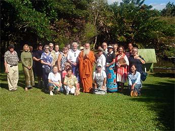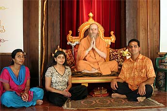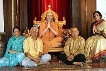 Bodhinatha meets with pilgrims: Madan Chatterji and his wife Tanushree Chatterji, from Indiana, Rup Chatterji and Indira Chatterji, from Los Angeles. All were originally from Calcutta, India.