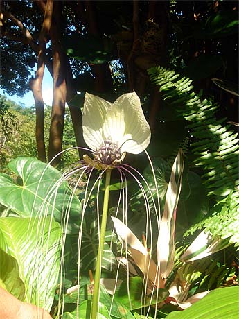 They all stopped at the blossoming Bat Ears aroid, with its long whiskers. Many had never seen one. In fact, few people have. It's quite uncommon.
