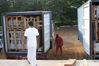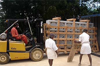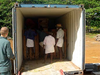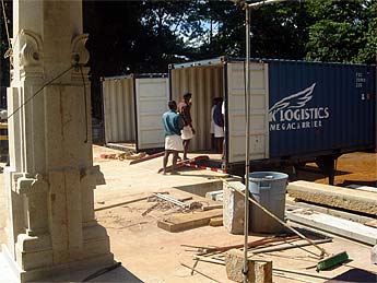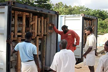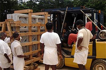 At the Iraivan site our visitors were able to watch the unloading of our next containers, which arrived yesterday afternoon.