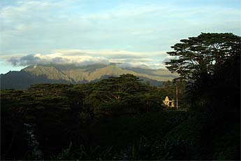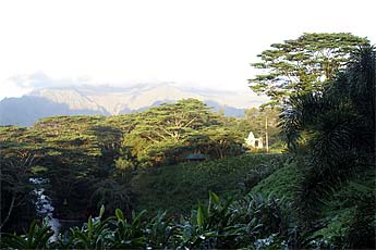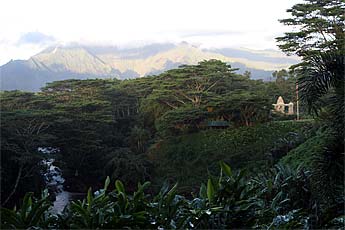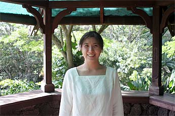 Sadomi set up her bowls in the Orchid Mandapam, overlooking the Wailua River...