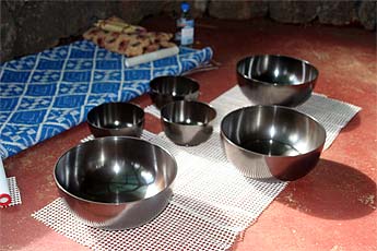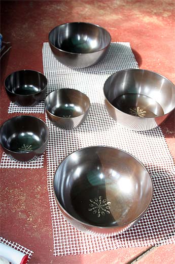 Yesterday a lady from Japan arrived, with an unusual request. She wanted to play her "Singing Rin" for the monks. She did not speak a word of English, Indivar Sivanathan helped her to arrange an "out of this world" performance. She plays these bowls in Shinto temples in Japan and wanted to make this offering.