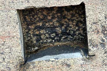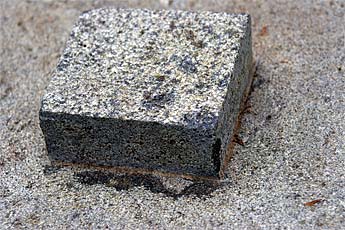 Out at Iraivan this Tara pillar lies in wait for being raised up. The rains bring a two-tone effect. We are looking at the top (we think...) which has a square notch to receive the stone which will go on top.