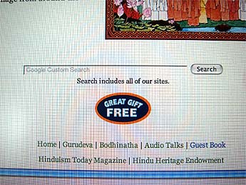 For ever so long, we have longed for a better way to search our vast site. Daily we struggle to narrow in on some obscure fact, verse, chapter of a Gurudeva book. Today we installed a special search field provided by the ever-creative, nearly-omniscient Google. The field is at the bottom of our home page.