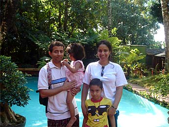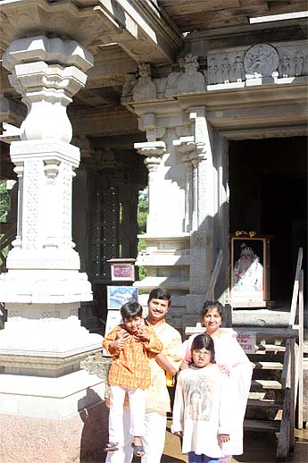 Aruna and Venkat Kommu arrived with their two young children, Vasanth and Veena from San Francisco. They had been teaching their children a Siva prayer when they met a couple who directed them to this Siva temple. After enjoying the Abhishekam and touring Iraivan Temple, they confided that they felt extremely blessed to be here at Siva's Feet.