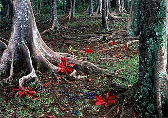 The trees have amazing roots, which rise out of the ground to provide lateral support.