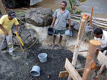 Church members are there to give a helping hand in pouring the concrete.
