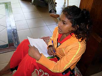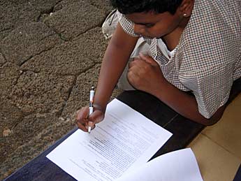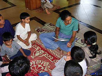 A group is being briefed by Ariadassy regarding the questions to be answered. The smaller ones are doing the test orally.