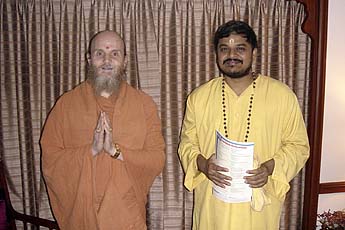 "We had many meetings in Chennai. Here is Brahmachari Ramanachitra from the local Chinmaya Mission greeted Bodhinatha at the hotel. He has spent many years in Jaffna, and knows all about Yogaswami and our line of gurus."