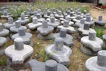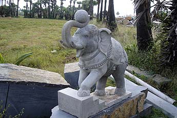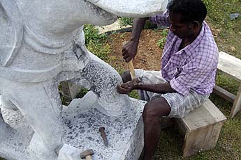 We're a bit out of order in the photos, jumping ahead to our visit of the carving site in Mahabalipuram for the stone elephants and Hanuman for Iraivan. This is the clay model made for the stone elephant hold the globe.