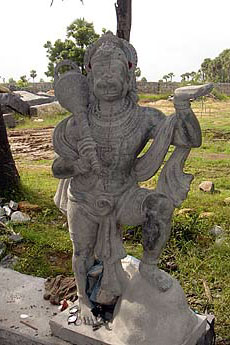 This is the clay model of Hanuman. In his raised left hand will sit a marble version of Iraivan temple.