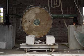 Not everything at this worksite was "chip, chip, chip." This giant rock saw was cutting the slabs into neat pieces with ease.