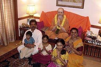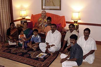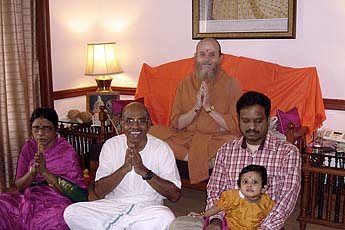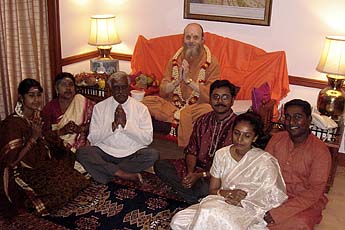 "Today we flew from Singapore to Kuala Lumpur, were met by a medium sized group of members at the KLIA Airport. In the evening we had a satsang at Appasamy Kuppusamy's home. Most members were able to attend, including visiting Deva Rajan and Easan Katir, so the house was packed."