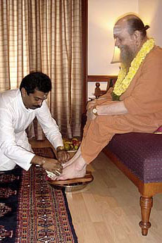 Gunalan brought his set of Tiruvadi for Bodhinatha to bless.