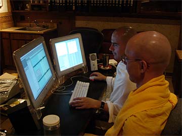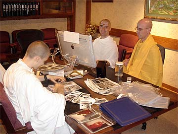 Back home we show, from a few weeks back, the team working on Archive Day, organizing and filing all of Gurudeva's lifetime legacy of talks, videos, photos and more.