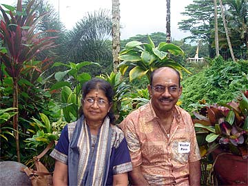 This is a quiet Sunday morning and several Hindu visitors arrived for the morning Abishekam at the very beautiful Kadavul Siva Temple. Sevla Subramaniam and his wife Saro.