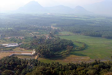 View of Palani from the rope car coming down from the hill.