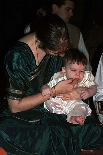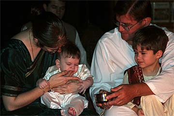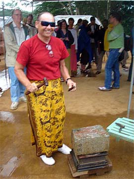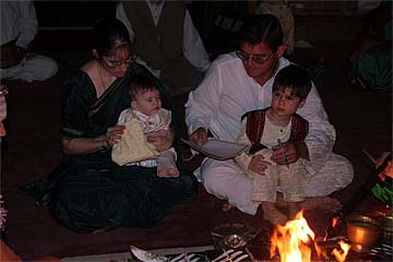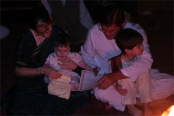 His grand father Aran and brother Chidambaram are present for the ceremony. His father Nathan had to stay on the mainland to take care of business.