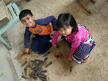 Two little helpers sorting the shilpi's tools.