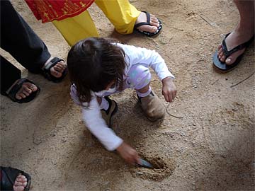 Aarti, seven-years old was delighted to help saying "No, that's one is no good, it's crooked... yes, use that one!"