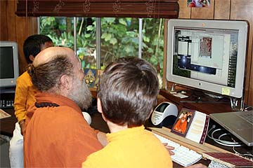 Chidambaram is more interested in that monk behind the camera taking his picture. Meanwhile 5-year old Mayuresh is very engaged in the picture selection process. A precious energetic and very articulate little boy, he would suddenly make these authoritative pronouncements: "Everyone should agree if we are having an agreement!"