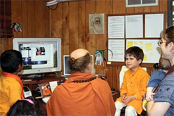 Sivakatirswami invites the kids in one afternoon to assist with the daily TAKA. Here he asks them to help him with the daily photo selection process, which photos we should use and which ones we should throw away.