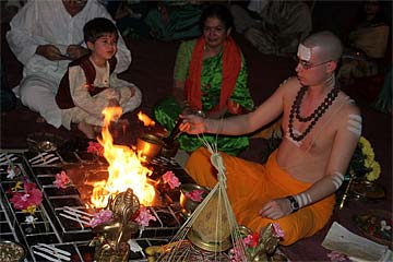 Lakshmi Kanthareddy praying before the homa....