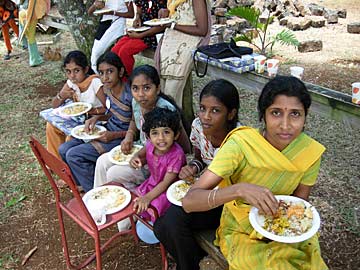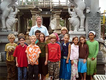 On a special visit to the Hindu temple, here are the 3rd grade children from the Kula School with their teacher "Ben." The Kula school is located on the North Shore on the Island of Kauai.