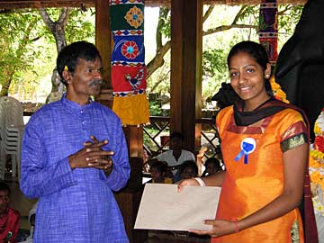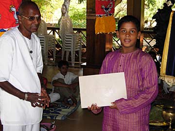 Time for certificates of completion of the SHR series. Brahmachari Vel offering one to Dayananda.
