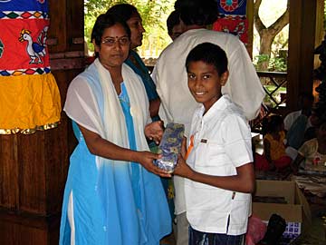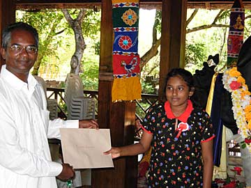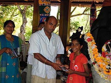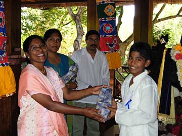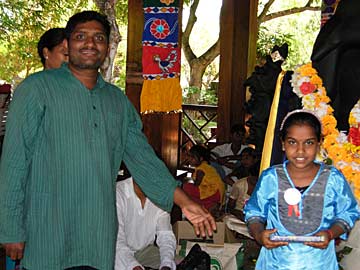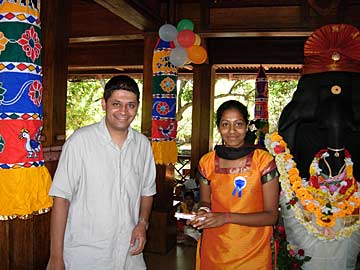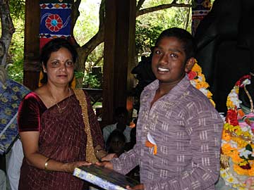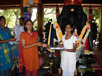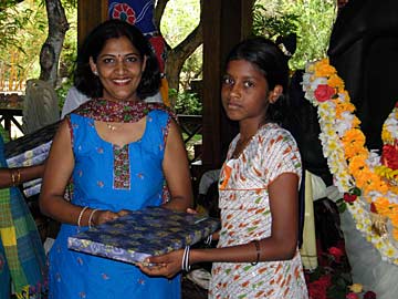 Mrs. Priya, one of our festival sponsors, to Giradevi.