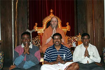 Mahendran, Krishnamurthy and Thenagaran visited us from Singapore for a couple days. They've wanted to visit for a long time, and one of them used to attend Kulapati Dohadeva's Saivism classes years ago. They had a a good darshan meeting with Bodhinatha.