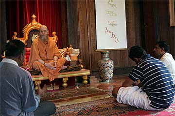 They asked good questions about how to practice more religion in such a hectic work schedule that Singapore puts them through. Companies typically make employees work much longer hours than they should. One of the men leaves for work at 6:30am and heads back home at 10pm. Bodhinatha gave advice about how their Hindu principles can be practiced right in the workplace.