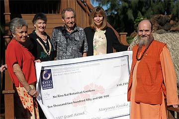 Bodhinatha joined other board members of the Kauai Aloha Endowment during the retreat to make a $10,000.00 grant to Na ‘Āina Kai Botanical Garden-Kauai. More about that below.