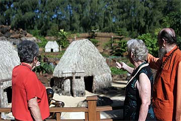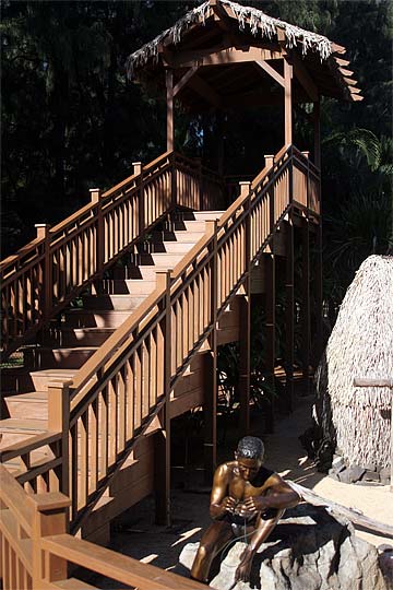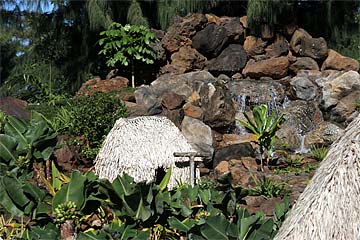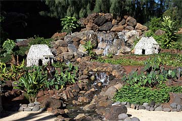 The exhibit is a huge outdoor replica of a "slice" of the island, like a pie piece from the top of the mountain to the sea. The Hawaiian kings would divide the islands like this to allow each community to have a equal share of all the environments from the shores to the mountains.
