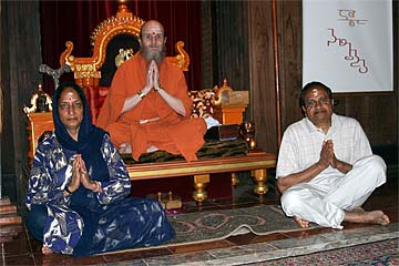 Mr. and Mrs. Nankisoor are from Mississagua near Toronto, from Trinidad originally. They are both teachers and showed lots of appreciation to Bodhinatha for Hinduism Today magazine presenting the traditions in modern language. They expressed sadness that Hindu kids are being raised on Puranic stories that posit the Gods as getting angry, fighting and killing, etc. Bodhinatha signed the very first copy of our new book What Is Hinduism?, for them to take home.
