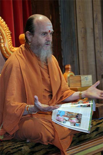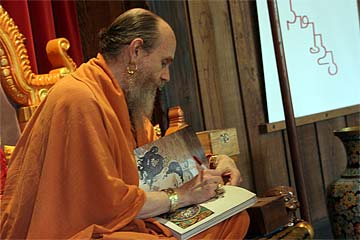 Here he is giving away a copy and plans to follow Gurudeva's footsteps with book signing for guests and pilgrims.