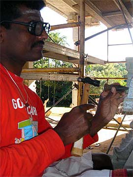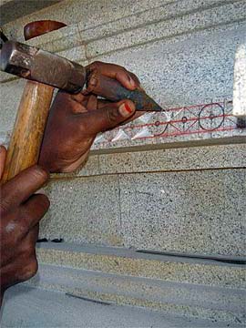 These needle-sharp chisels only last a few minutes before they are too dull for this intricate work. The silpis are going through 400 chisels a day at the moment!