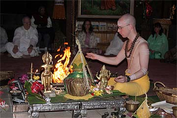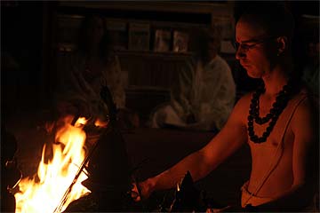 Yogi Japendranatha performs the homa this chilly morning.
