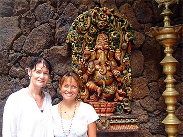 Keya Keita (right) with her mother Elizabeth Gill Lui beside an exquisitely handcarved image of Lord Ganesha made from one piece of wood.