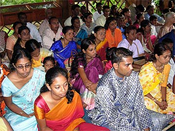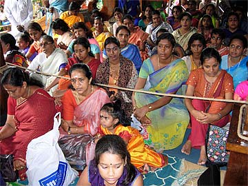 Devotees calmly seated inside the Mandapam while preparations are going on for the ceremony....