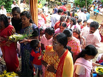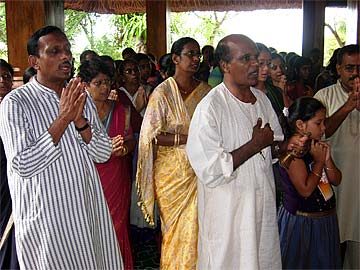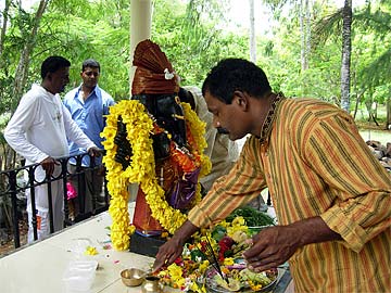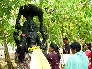 Devotees worshipping at the other shrines on the property. Here they are at the