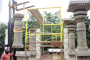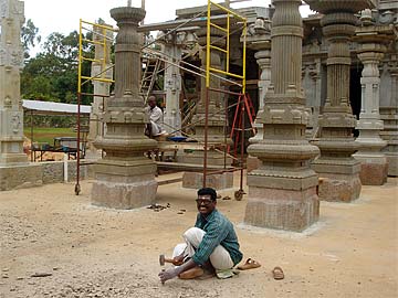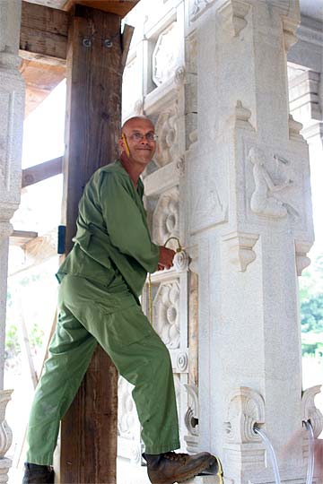 Our silpis are working on new ornamentation on the upper levels of the main sanctum and they need high work space... Here is Sadhaka Adinatha, putting the support systems together.