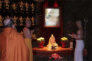 As if Gurudeva were pouring out to us all, as one monk said "a river of liquid love" in response to the same coming from our monastic pujaris. The white milk on his sandals did seem like white, flowing adoration for the Satguru.