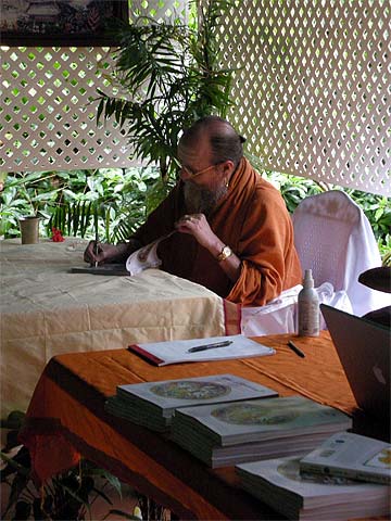 Today Bodhinatha started "book signings" following a pattern set by Gurudeva before on tour days. Bodhinatha is coming at the end of both the 9am and 11am tours and signing copies of our newest 416-page, full-folor book, "What Is Hinduism?"