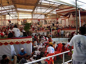 Pilgrims taking a rest before starting the long march home. Some pilgrims come all the way for several miles on foot to the Lake while others come by bus/cars and return on foot.