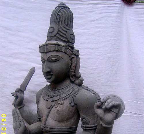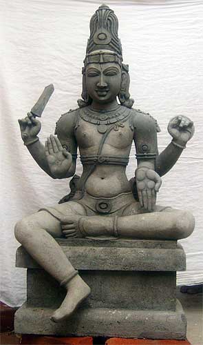 These are made of soft plaster, in full size, which is 30 inches tall. Once blessings are received from the Aadheenam, the carvers will create an exact duplicate in white granite.