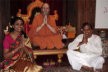 Most of our Sivaratri pilgrims returned home over the past few days. Each in turn came for darshan with Bodhinatha before departing. Here is Dr. Sunder and his wife Thilaka, long time supporters of the Parampara. Dr. Sunder has been doing great service for our publications, team, Iraivan Temple and for the Sri Lankan Tamils in need of medical aid in Sri Lanka.