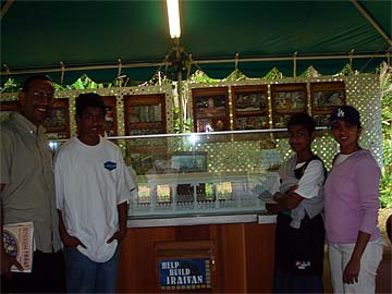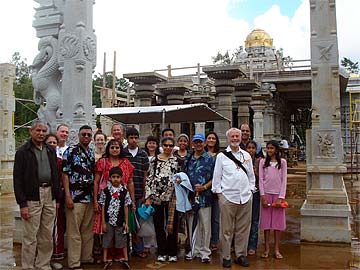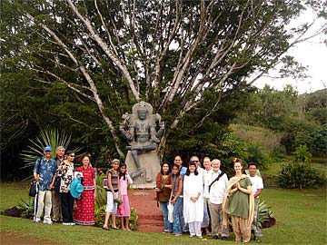 Inside the Banyam Mandapam in front of the hand-carved model of the Iraivan Temple are Swentra, Deorajie, Vijai and Anil. Another happy family who have just purchased the new book "What is Hinduism."
