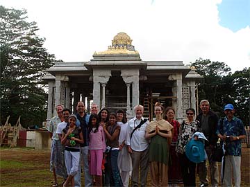 Everyone in front of the very beautiful Dakshinamurthy. Notice how the banyan tree opened up behind the deity. (Now thats another story)!